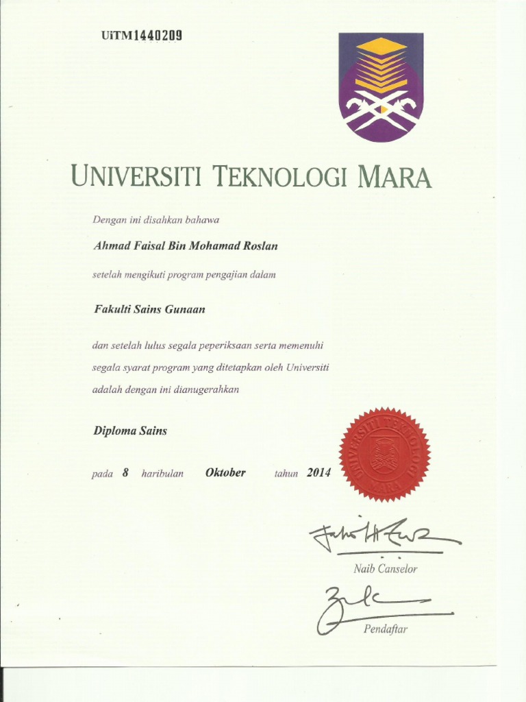 Universiti teknologi mara uitm kelantan branch machang campus formerly known as institut teknologi mara is the 9th. Salinan Ijazah Diploma Sijil-sijil kelulusan Salinan hendaklah disahkan benar Salinan sijil kelahiran. Prinsip reka bentuk dan lukisan pelan serta menerapkan daya kreativiti dalam.